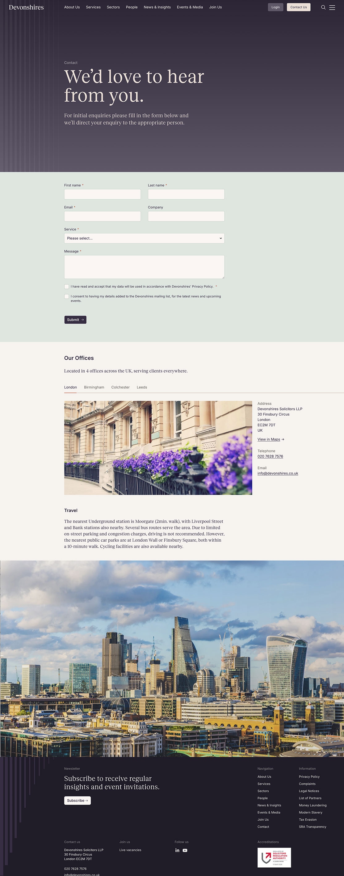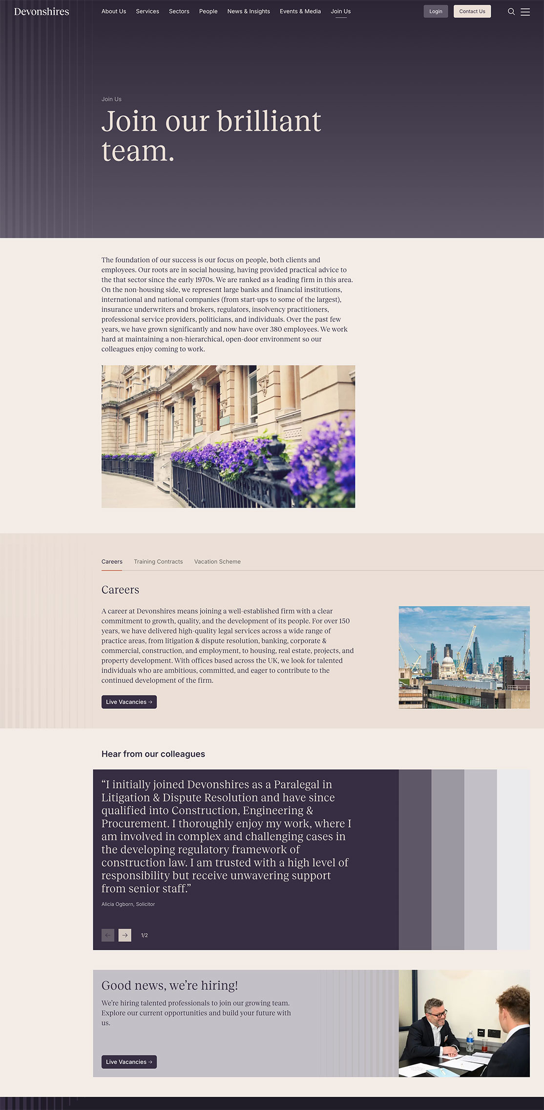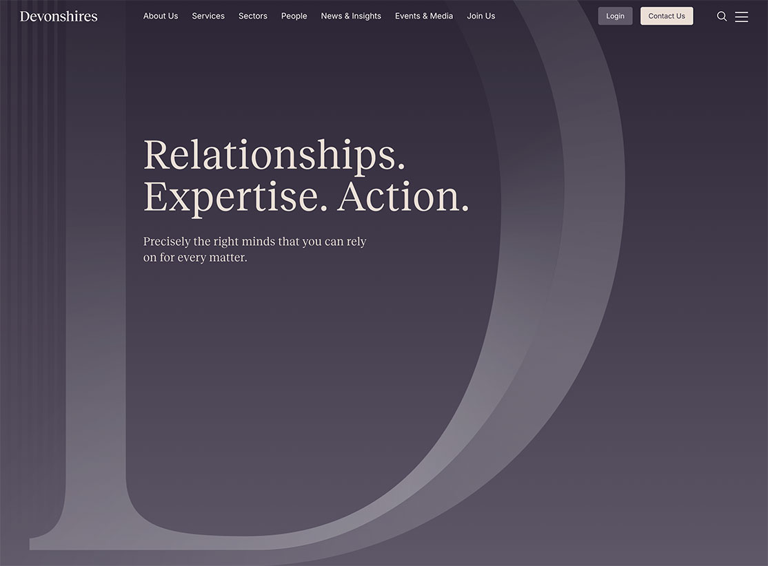 Devonshires are a firm of solicitors that have been based in the City of London for over 150 years, they are a leading practice providing high-quality, accessible services to domestic and international clients, including developers, local authorities, housing associations and financial services firms. We worked on this project with our partner agency, Ascend Studio, who rebranded the firm.